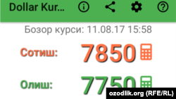 Тошкентнинг Чорсу бозорида 11 август куни бир АҚШ доллари 7780 сўмдан олинди, 7850 сўмдан сотилди.