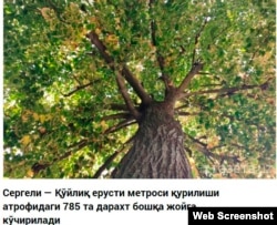 Айни пайтда дарахтларнинг ёзда кўчирилиши эътирозларга сабаб бўлмоқда.
