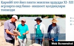 Наманган вилоятидаги Ахсикент шаҳристони шарқий работида XI-XII асрларга оид бино-иншоот қолдиқлари топилди (www.uza.uz, 3 июль).