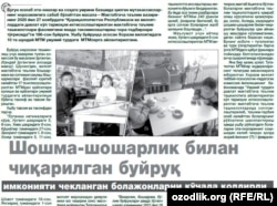 Мактабгача таълим вазирининг 2020 йил 27 ноябрдаги “Қорақалпоғистон Республикаси ва вилоятлардаги давлат кўп тармоқли ихтисослаштирилган мактабгача таълим ташкилотлари фаолиятини янада такомиллаштириш чора-тадбирлари тўғрисида”ги 186-сон буйруғи ота-оналар ва соҳага умрини бахшида қилган мутахассисларнинг норозилигига сабаб бўлмоқда (“XXI аср”, 11 март). Ушбу буйруққа кўра, Хоразм вилоятидаги 17 та ихтисослаштирилган МТМдан 10 таси умумий турдаги МТМга айлантирилган. Оқибатда вилоятдаги 5 ёшгача бўлган 250 дан зиёд жисмоний ёки психик ривожланишда нуқсони бўлган болалар кўчада қолган.