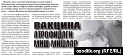 “Адолат” партияси етакчиси Баҳром Абдуҳалимов мамлакатдаги коронавирусга қарши эмлаш жараёнидаги камчиликлардан сўз очди. Хусусан, у сўнгги кунларда “ZF-UZ-VAC” туридаги вакцинанинг иккинчи ва учинчи дозасини олишда муаммо бўлаётганига эътибор қаратди (“Жамият” газетаси, 12 август).