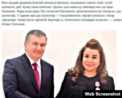Ю.Усмонова президент Шавкат Мирзиёевга миннатдорлик билдирар экан, бошқаларни ҳам уни дуо қилишга чақирган.