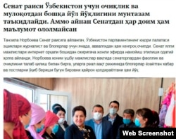 Олий Мажлис Сенати раиси Танзила Норбоева Ўзбекистон учун очиқлик ва мулоқотдан бошқа йўл йўқлигини мунтазам таъкидласа-да, айнан Сенат матбуот хизматидан ҳар доим ҳам маълумот олиб бўлмаяпти (www.daryo.uz, 14 апрель)