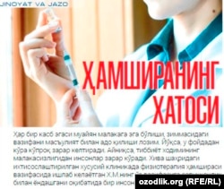 Аввалроқ Сурхондарё вилояти Шеробод тумани Катта боғ маҳалласидаги мактабда ишловчи ҳамширанинг айби билан 7-синфда таҳсил олаётган қизнинг оёғи фалажи бўлиб қолгани хабар қилинганди. Ушбу ҳолатда ҳам ҳамшира укол қилишда хатога йўл қўйган.