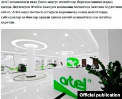“Аrtel” бренди остидаги ширкатларга солиқ бўйича махсус имтиёзлар берилган жамоатчиликнинг эътирозига сабаб бўлмоқда. Компания бу борада расмий муносабат билдириб, якка ўзига махсус имтиёзлар берилмаганини иддао қилди (www.kun.uz, 18 январь).
