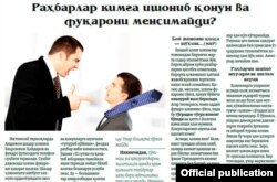 “Ҳозирча реал Ўзбекистонда ҳоким деганда, энг сўконғич шахслар тушунилади. Жойлардаги халқнинг куни шуларга қолгани эса жуда ачинарли. Бора-бора дунё ҳамжамияти бундай зўравон ва қўпол бошқарув услубини “Ўзбекча менежмент” дея атай бошлашмаса бўлгани”, деб ёзади газета.