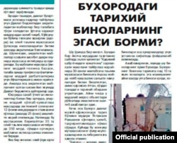 Газета Бухородаги айрим обидалар ҳали ҳам давлат муҳофазасига олинмаганига эътибор қаратган.