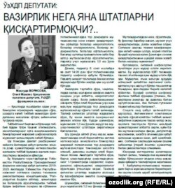 Олий Мажлис Қонунчилик палатаси депутати Мақсуда Ворисова соғлиқни сақлаш тизими, хусусан, тиббиётнинг бирламчи бўғинида штатлар қисқартирилганини танқид қилди (“Ўзбекистон овози” газетаси, 2021 йил 16-сон).