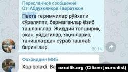 Муҳим эслатма: "PaxtaGram" лойиҳасида бериладиган маълумотлар учун Озодлик таҳририяти масъул эмас!