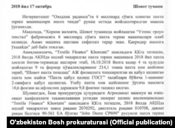 Ўзбекистон Бош прокуратураси шовотлик тингловчимизнинг Paxtagram рукнида чоп этилган хатига қуйидаги жавоб қайтарди: