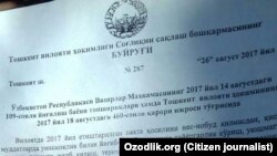 Бу буйруқ Тошкент Облздравидан¸ 26 август кунги¸ 287-рақамли. Бу ерда 4-пунктда ходимларни пахтага мажбурий жўнатмаслик ҳақида қатьий айтилган! Шифохонамиз бош врачи эса "бу буйруқ сизларга таaллуқли эмас", деди.