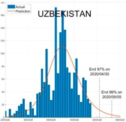 SUTD инновациялар лабораторияси томонидан чоп этилган ҳисоботга кўра, Ўзбекистонда коронавирус эпидемияси 2 май куни 97 фоизга, 7 майда 99 фоизга тугайди. Унинг батамом 100 фоизга якунланиши эса 20 майга тўғри келиши прогноз қилинган.