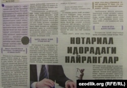 Тошкент шаҳридаги айрим нотариуслар фуқароларнинг ҳуқуқ ва манфаатларини ҳимоя қилиш ўрнига давлат ишониб топширган ваколатларини даромад манбаига айлантириб олган (“Жамият”, 10 март). Мақола муаллифи Ж.Ниёзов ўзи дуч келган ҳолатлар асосида нотариал идоралардаги қонунбузарликлар, хизмат ваколатини суиистеъмол қилиб, оддий одамларни чув тушираётган нотариусларнинг хилма-хил найранглари ҳақида сўз юритган. Масалан, Тошкент шаҳри Олмазор туманидаги 11-сонли давлат нотариал идорасида турар-жойдан текинга фойдаланиш шартномасини тузиш жараёнида кўплаб фуқаролардан қонунан белгиланган 22 минг сўм ўрнига 160 минг сўмдан ундирилган. “Мавзу юзасидан жамоатчилик фикрини ҳам ўрганиб кўрдим. Бунинг учун юртдошларимиз фаол бўлган ижтимоий тармоқларда нотариал идорадаги қандай қонунбузарлик ва қинғирликларга дуч келишгани, шунингдек, ижара, текин фойдаланиш шартномаларини расмийлаштирганлик ва бошқа турдаги нотариал ҳаракатлар учун нотариусларга қанча пул тўлашганини суриштириб кўрдим. Фуқаролар манфаатини ҳимоя қиладиган идора томонидан таланганлар оз эмас экан”, дея хулоса қилади муаллиф.
