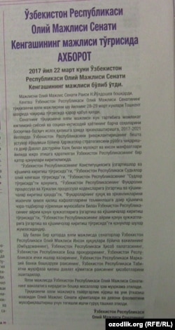 Жорий йил 28-29 март кунлари Тошкентда Олий Мажлис Сенатининг тўққизинчи ялпи мажлиси бўлиб ўтади (“XXI аср”, 23 март). Сенат матбуот хизматига кўра, ялпи мажлисда бир қатор қонун ҳужжатлари билан бирга “Ўзбекистон Республикасининг Конституциясига ўзгартишлар ва қўшимча киритиш тўғрисида”ги қонун муҳокама этилади. Шунингдек, сенаторлар мамлакат Бош прокурори, Ички ишлар вазири, Марказий банк раиси, Олий Мажлиснинг Инсон ҳуқуқлари бўйича вакили ва бошқа мутасаддиларнинг ҳисоботларини тинглайди.