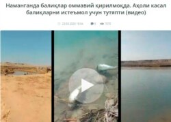 Наманган вилояти ҳудудида – Сирдарё ҳавзасида балиқларнинг ўлати кузатилди (www.xabar.uz, 23 март). Сув юзасига чиққан касал балиқлар эса маҳаллий аҳоли томонидан тутилмоқда. Қайд этилишича, балиқлар нимадан касаллангани ва ўлганини аниқламай туриб, уларни тутиб ейиш ва сотиш инсон соғлиғи учун хавфлидир. Шу боис Экология ва атроф-муҳитни муҳофаза қилиш бошқармаси, Экопартия, санитария-эпидемиология ходимлари мазкур ҳолатга зудлик билан аниқлик киритиши лозимлиги уқтирилган.
