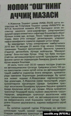 Тошкент шаҳри ИИББнинг икки нафар инспектори пора билан ушланди (“Инсон ва қонун”, 2 апрель). Исми ошкор этилмаган икки инспектор Олмазор туманидан Тошкент вилоятининг Зангиота туманига ўтадиган “Минерал сувлар” блок-постида тунги навбатчилик қилаётган пайтда постдан 100 дона прессланган сомон ортилган юк машинаси ўтган. Юк машинаси тўхтатилганда ҳайдовчининг транспорт воситасини бошқариш ҳуқуқини берувчи ҳужжати йўқлиги маълум бўлган. Ички ишлар ходимлари ҳайдовчидан 150 минг сўм пора олаётганида ҳуқуқни муҳофаза қилувчи ходимлар томонидан ушланган. Қайд этилишича, ҳайдовчи бу постдан аввал ҳам кўп бора ўтган ва инспекторлар билан “тиллашиш”ни билган. Жиноят ишлари бўйича Олмазор туман суди раиси Зафар Бобонов жиноят содир этган ички ишлар ходимларига тегишли жазо берилганини маълум қилган.