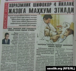 Хоразм вилояти Боғот туман тиббиёт бирлашмаси шифокори Шержан Аллашукуров 2 яшар боланинг бевақт ўлимига сабабчи бўлди. “Даракчи” нашри хабарига кўра, 2015 йил 12 августда туғилган Камронбек Қувондиқов касаллиги боис туман тиббиёт бирлашмасига олиб келинган. Шифокор Ш.Аллашукуров эса болани тўлиқ тиббий кўрикдан ўтказмасдан юзаки ташхис қўйган. Беморни ичак инфекцияси – “сальмонеллез”дан даволаш чорасини кўрмасдан, уйига жавоб бериб юборган. Шифокорнинг ўз вазифасига совуққонлиги оқибатида эса болакай оламдан ўтган. Суд ҳукмига кўра, шифокор Ш.Аллашукуров Жиноят кодексининг 116-моддасида кўзда тутилган жиноятни содир этганликда айбланиб, унга 4 йил озодликни чеклаш жазоси тайинланган. Шифокор 2013 йилда ҳам айни шундай жиноят содир этгани маълум бўлган.