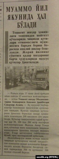 Тошкент шаҳар ҳокимлиги пойтахт кўчаларида чиқинди қутилари етишмаслиги муаммосига барҳам беришга киришди (“Жамият”, 18 август). Шаҳар Ободонлаштириш бошқармаси бошлиғи ўринбосари Саидумар Аглаевга кўра, йил якунига қадар барча ҳудудларда махсус қутилар ўрнатилади. Бу мақсадда 200 миллион сўм ажратилган бўлиб, кўчалар гавжумлигига қараб чиқинди қутиларини ҳар 50, 100 ёки 200 метр масофада жойлаштириш режалаштирилган. Кўпдан буён маҳаллий матбуотда Тошкентда чиқинди қутилари етишмаслиги, бу эса шаҳар тозалиги ва имижига салбий таъсир этаётгани ёзиб келинаётган эди.