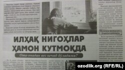 Тошкент шаҳри Олмазор туманидаги Республика уруш ва меҳнат фахрийлари пансионатида фарзандсиз қариялар билан бирга, ўғил-қизлари оқибатсизлик қилган қариялар ҳам бор (“Оила даврасида”, 24 ноябрь). Пансионат ходими Ойгул Муҳаммадиева бу даргоҳдаги қариялар уйда фарзандлар ва неваралар даврасида яшашни орзу қилишини айтган. “Фарзанд номига номуносиб кимсалар кексайиб, мурувват ва қадрга муҳтож бўлиб қолган ота-онани қариялар уйи каби маҳзун гўшаларга “сургун” қилишдан олдин бу ишнинг оқибатини чуқурроқ ўйлаб кўришса, унинг дунёга келишига сабабчи бўлган мўътабар инсонлар жигаргўшалари қилмишидан азият чекиб ўтирмаган бўлармиди?..” дея ноқобил фарзандларни инсофга чақиради муаллиф.