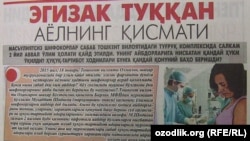 Тошкент вилояти Олмалиқ шаҳри туғруқхонасида эгизак фарзанд дунё келтирган аёл вафот этди. “Даракчи” нашри хабарига кўра, воқеа 2015 йил 18 январда рўй берган. Тошкент вилояти прокуратураси марҳуманинг онаси Муҳаббат Шодиеванинг аризасига биноан мазкур ҳолатни текшириб, аёлнинг вафотига шифокорларнинг масъулиятсизлиги ва совуққонлиги билан қарагани сабаб бўлганини аниқлаган. Ушбу ҳолат юзасидан Олмалиқ шаҳар туғруқ комплекси бош шифокори ўринбосари Б.А., шифокорлар Н.М., З.С. ва И.А.лар Жиноят кодексининг 116-моддаси 3-қисми билан айбланиб, жазога тортилган.