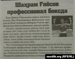Яшнобод суди айбсиз ватандошларни қийноққа солган миршабларни қамоққа йўллади. Отасини жазодан қутқариш учун 20 минг доллар пора берган прокурор қўлга олинди. Рио олимпиадаси совриндори Шаҳрам Ғиёсов профессионал боксга ўтмоқда.