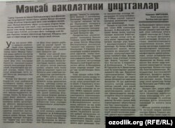 Ўзбекистондаги шаҳарлардан бирида судларда жиноят ишлари бўйича прокурор ваколатини таъминлаш бўлими прокурори лавозимида хизмат қилган шахс порахўрлик ва коррупцияда айбланди (“Ҳуррият”, 13 декабрь). Исми ошкор этилмаган прокурорнинг дон маҳсулотлари корхонаси раҳбари лавозимида ишлаб келган отаси ва унинг ўринбосари катта миқдордаги маблағни ўзлаштиришда айбланиб, қамоққа олинган. Прокурор эса отаси ва унинг ўринбосарини пора йўли билан жазодан қутқариб қолишга уринган. У порани чўнтагидан эмас, отасининг ўринбосари яқинларидан олишга қарор қилади ва улардан 20 минг доллар ундиради. Шу тариқа у терговчи билан гаплашиб ишни ёптиришга ваъда берган. Аммо прокурорнинг Тошкентга қатнашлари ҳам натижа бермаган – унинг отаси ҳам, яқинлари 20 минг доллар пора берган шериги ҳам озодликдан маҳрум этилган. Шундан кейин 20 минг доллар берган шахснинг яқинлари прокурорнинг қилмиши хусусида ҳуқуқ идораларига хабар беради. Қонунни поймол қилган қонун ҳимоячиси қамоққа олингани хабар қилинган. Бошқа тафсилотлар очиқланмаган.