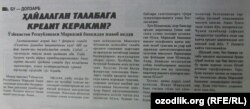 Ўзбекистон Марказий банки раиси ўринбосари Адҳам Исламов имзоси билан “Оила даврасида” газетасига йўлланган жавоб “аравани қуруқ олиб қочиш” деб баҳоланди (“Оила даврасида”, 15 февраль). Гап шундаки, газетанинг ўтган сонларидан бирида талабаларнинг республика банкларидан таълим кредити олишида муаммолар мавжуд экани, бу борада сунъий тўсиқлар борлиги танқид қилинган эди. Ушбу мақола юзасидан таҳририятга жавоб йўллаган Марказий банк раиси ўринбосари А.Исламов муаммо ҳақида лом-мим демасдан, таълим кредити олиш бўйича яратилган имтиёзлар хусусида баландпарвоз фикрларни баён этган. Хатда бошига мусибат тушаётган, яъни шартнома пулини тўлай олмагани боис ўқишдан ҳайдалаётган талабаларни қониқтирадиган бирор фойдали маълумот берилмаган. Газета таҳририяти Марказий банкни аравани қуруқ олиб қочиш ўрнига таълим кредити бўйича муаммоларни ҳал этиш борасида амалий ҳаракатлар қилишга ундаган.
