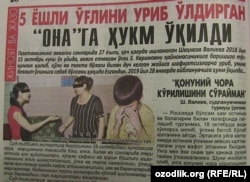 Беш ёшли ўғлини калтаклаб ўлдирган андижонлик Шаҳноза Валиевага ҳукм ўқилди, деб хабар беради “Даракчи” нашри. Аёл 2012 йилда Ш. Валиевга турмушга чиққан ва икки фарзандли бўлган. 2015 йил май ойида оилабоши ишлаш учун Россияга кетган. 2018 йил 15 октябрь куни Ш. Валиева ўз уйида норасида ўғлини шафқатсизларча уриб ўлдирган. Қайд этилишича, қайнонаси билан кўп бора зиддиятларга борган аёл вояга етмаган фарзанди “бувимникига бораман”, деб хархаша қилганидан ғазабланган. Суд жараёнида Ш. Валиева эри ва қайнонаси томонидан бир неча йил давомида ўтказилган руҳий тазйиқлар боис ўзини идора этолмай қолгани ва фарзанди қотилига айланганини айтган. Жиноят ишлари бўйича Улуғнор тумани суди раиси Сардорбек Юсуповга кўра, боласи ўлимига сабаб бўлган она 6 йил муддатга озодликдан маҳрум этилган.