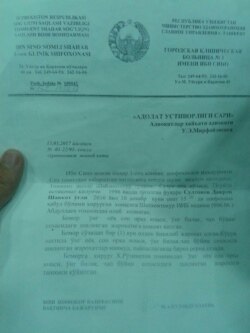 Ҳужжатда айтилишича¸ “беморга хирург Х. Рўзиметов томонидан зарур ëрдам кўрсатилган”.