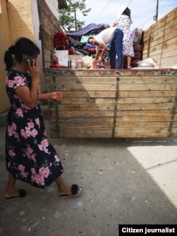 ​Фарғона вилоят, Риштон туман марказидаги уйлардан бирида яшовчи оила кўчиб кетмоқда. 2019 йил, 23 май.