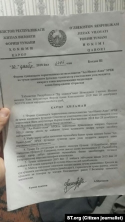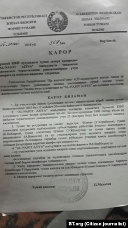 2015 йил май ойида тегишли қарорлар билан корхонамизга давлат томонидан Жиззах вилояти Фориш тумани ҳудудидан 3000 гектар ер майдони ажратилиб берилди. Аммо ҳокимлик икки йил давомида мени давлатдан олган ер майдонимга киритмади. Мен ушбу даврда катта пул тўлаб чорва молларимни турли ерларда боқиб юрдим. 2018 йил 30 декабрь куни Фориш туман ҳокими сохта ҳужжатлар асосида менинг еримни аввал туман захирасига олди, кейин бошқаларга сотиб юборди.