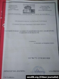 Вилоят раҳбарлари фирма раҳбари, ёш тадбиркор Аброр Сулаймоновга май ойида президент ташрифи арафасида Оҳангарон шаҳридаги 9-мактаб биносини жорий таъмирлаб беришни топширган. Май ойининг охирги 10 кунлигида мазкур мактабда қурилиш, пардозлаш ишларини олиб бордик. Қурилиш ишлари юқоридагиларнинг босими остида лойиҳа-смета ҳужжатларисиз олиб борилган. Энди эса эса вилоят ва шаҳар молия идоралари таъмир учун сарфланган 123,8 миллион сўм маблағни ўтказиб бермаяпти.