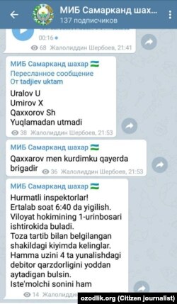 САМАРҚАНД. “Самарқанд шаҳри МИБдан ёзмоқдамиз. Бизда иш вақти чегараланмаган. Эрталаб соат 7 дан кечки 12 гача иш. Истаган пайтда – гоҳ тонгда, гоҳ тунда йиғилиш ўтказишади. Байрам кунлари ҳам ишлаймиз. Ҳатто меҳнат таътилидагилар ҳам ишга чиқишга мажбур. Раҳбарият нега меҳнат қонунчилигига риоя қилмайди?”