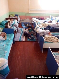 ШАРОФ РАШИДОВ тумани. “Жиззах вилояти Шароф Рашидов туманида жойлашган 16-сонли МТМ 60 ўринга эга. Аммо ҳозир болалар сони 110 нафарга етди. Уларни таълим олиши ва дам олиши учун шароит йўқ. Болаларимиз ерда ётибди. Бундай аҳволга йўл қўйиб бўладими?”