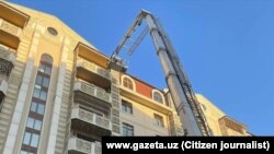 24 май куни Тошкентнинг Мирзо Улуғбек тумани, "Новомосковская" турар-жой мажмуасидаги кўп қаватли уйнинг саккизинчи қаватидаги хонадон балконига илинган Украина байроғи махсус кран воситасида олиб ташланди.