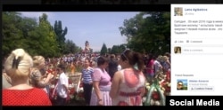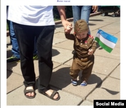 Иштирокчиларнинг айримлари кўксида "Георгий ленталари", айрим болалар эса ҳарбий кийимларни кийиб олишган.