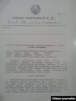Озодлик тасарруфида нусхаси мавжуд бўлган бу телеграммада “Пластик картани тўлов учун қабул қилишдан бош тортган” ходимлар ва “Пластик карта орқали ҳисоб-китоб қилишда нақд пулга нисбатан 20-25 фоизга қиммат ҳақ талаб қилаëтган” шахслар жазоланиши айтилади.